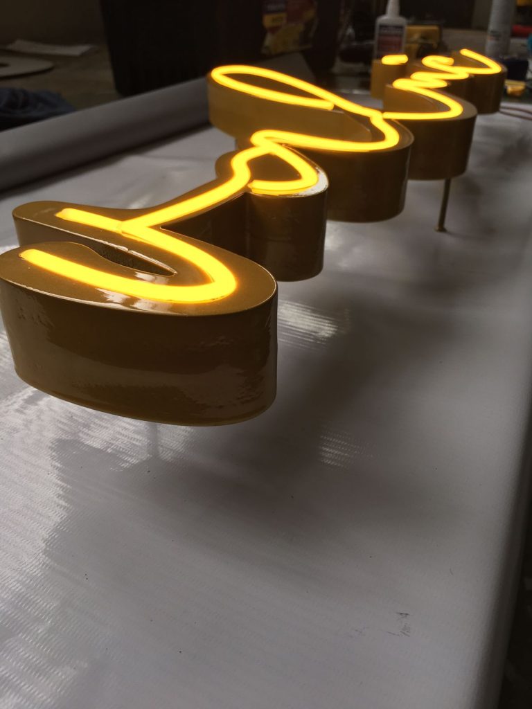 Também conhecidas como: letra em relevo, letra 3D ou letra bloco, é um tipo de letreiro muito utilizado para compor tanto ambientes externos, como fachadas de empresas, comércios, shoppings e residências, quanto internos, como eventos e festas.